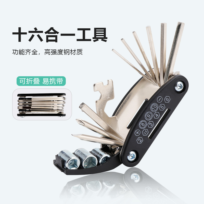 16合一多機能折りたたみレンチ自転車ツールセットツール折りたたみレンチセット