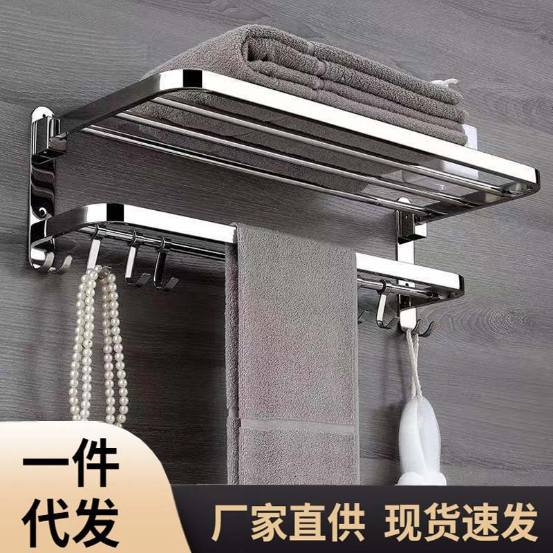 304タオルラックステンレスバスタオル棚浴室トイレ棚トイレ穴なし折り畳み式可動棚壁