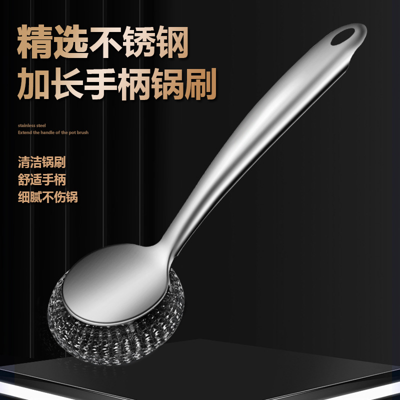 ステンレス鍋ブラシ、キッチン家庭必需品、鍋洗い専用長柄、食器洗いブラシ、ステンレスワイヤー厚手鍋洗いブラシ