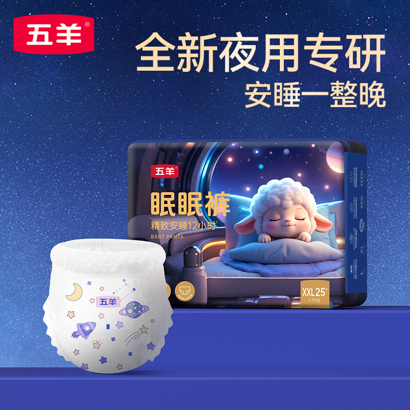 五羊眠眠裤婴儿尿不湿超柔透气夜用大吸量