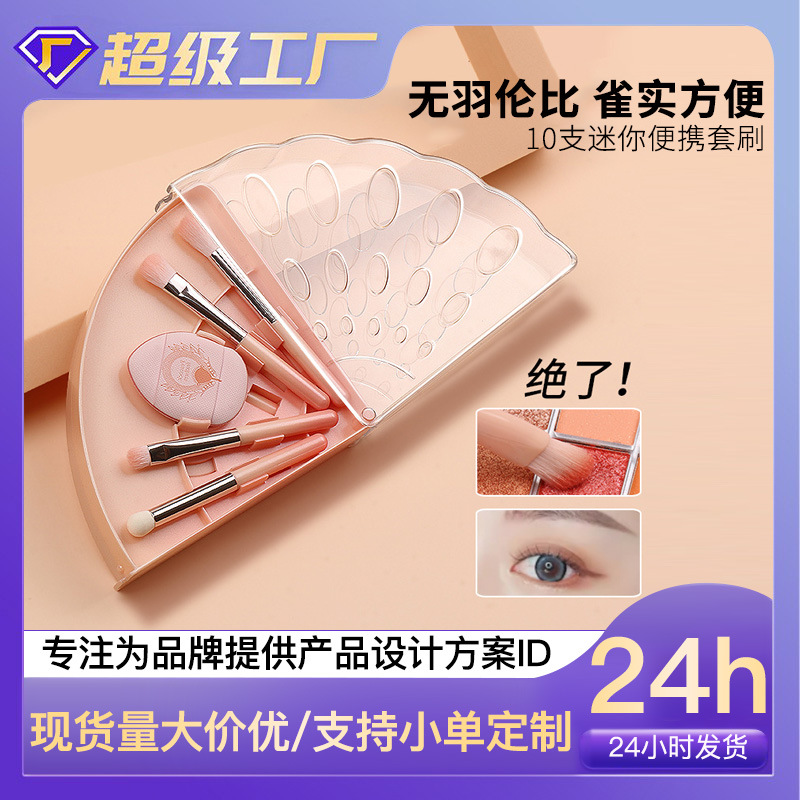 新しい十合一の目の化粧セットはアイシャドーブラシをつけて完璧な刃を遮って美化粧道具の携帯型の化粧ブラシを使います。