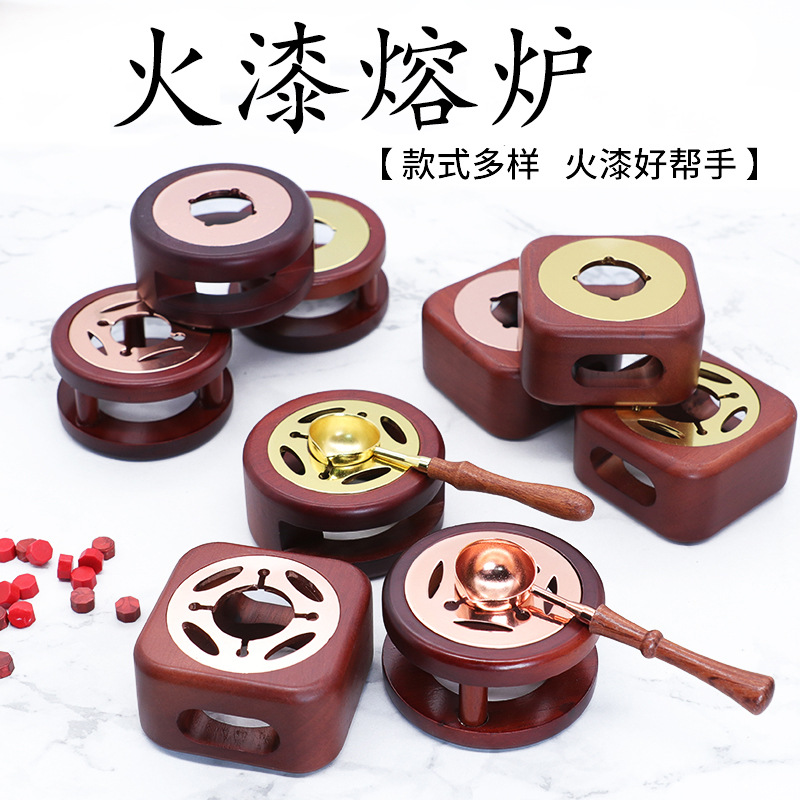 現物火漆炉レトロ火漆溶鉱炉マカロン紅花梨木質円形ケヤキdiy火漆ハンドル