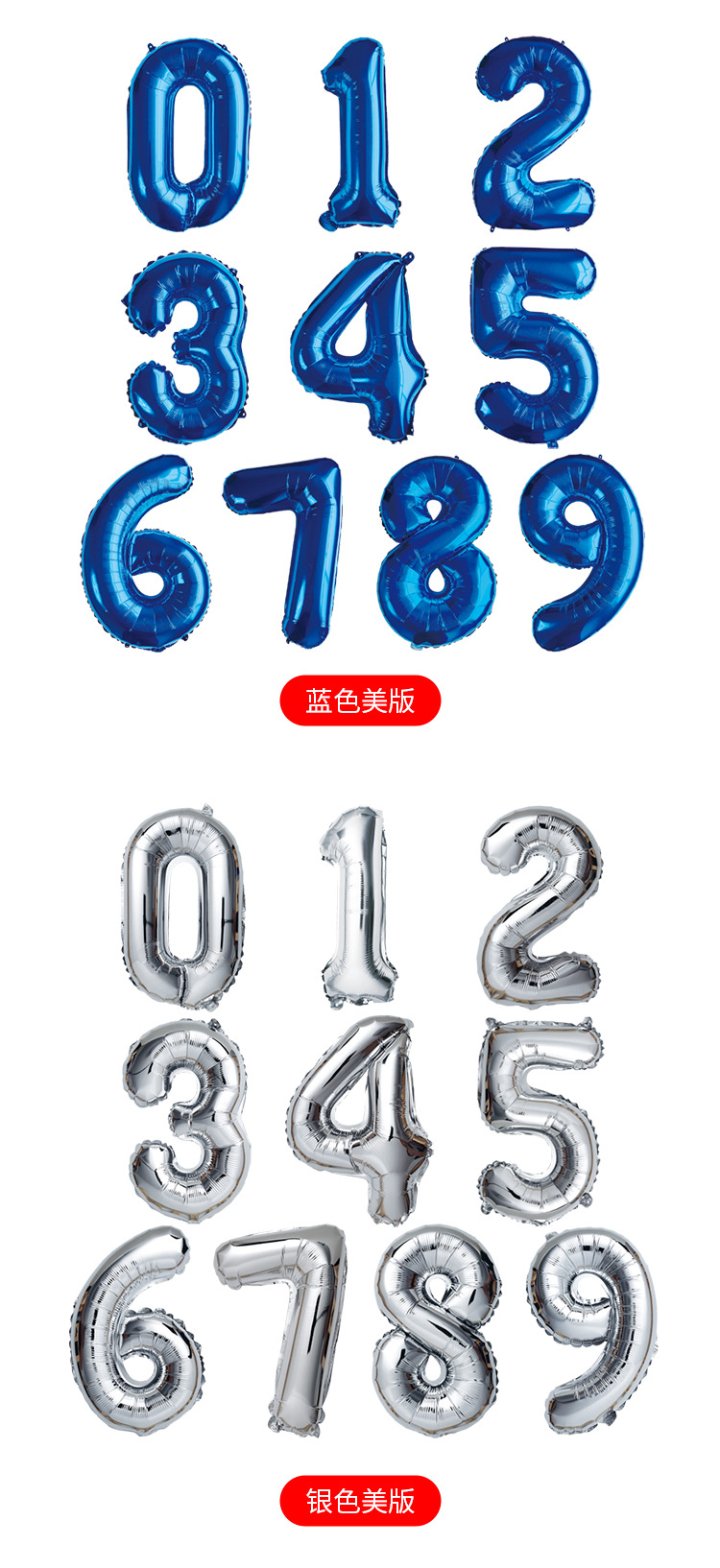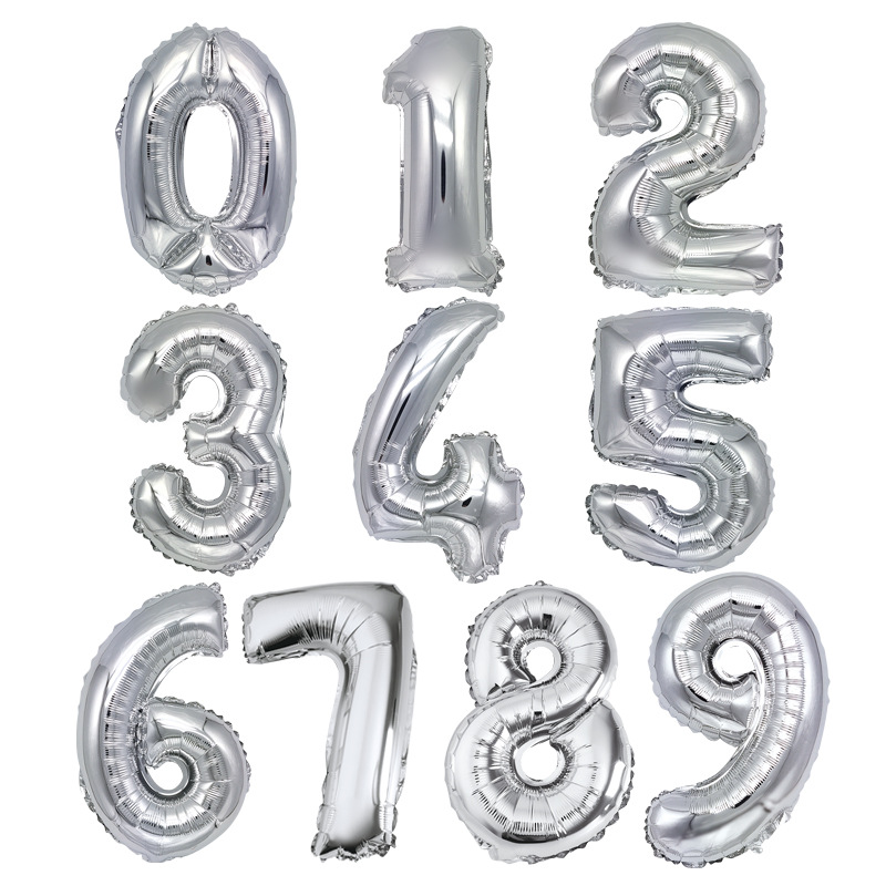 現物16インチ数字0-9アルミ膜風船結婚祝い子供の誕生日パーティー装飾配置風船卸売り