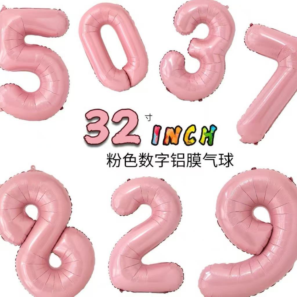 跨境胖版32寸粉色数字铝膜气球生日派对场景装饰布置拍照道具批发