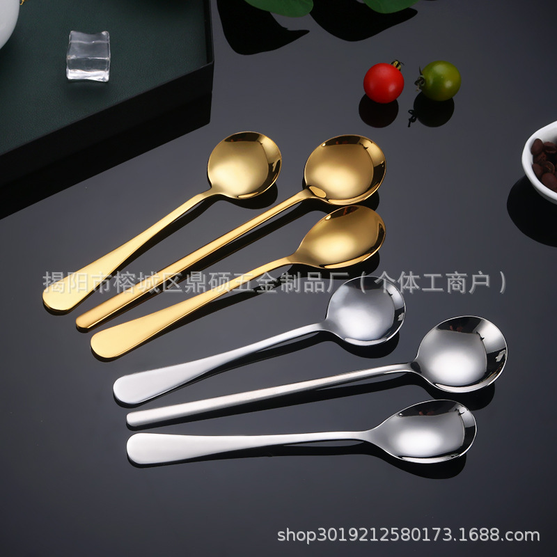 ホテル卸売ソリッドカラー家庭用ステンレス鋼テーブルスプーンキッチンレストラン食事とスープ韓国長柄デザートスプーン