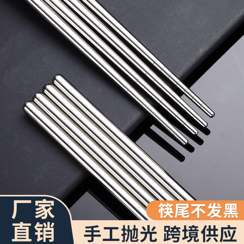 不锈钢筷子韩式防滑筷子可激光手抛中空圆筷家用光身不锈钢筷子