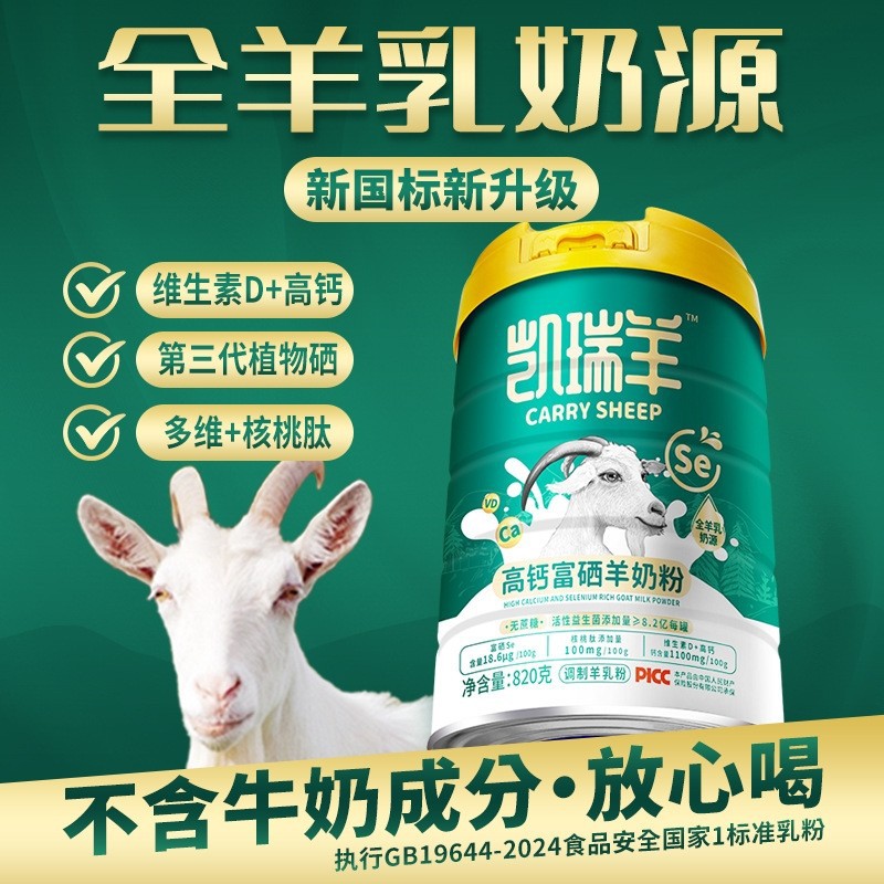 新しくアップグレードされたケイリー羊有機純粋ヤギミルクパウダー820g、学生、中高年、大人、子供向け高カルシウムヤギミルクパウダー缶詰