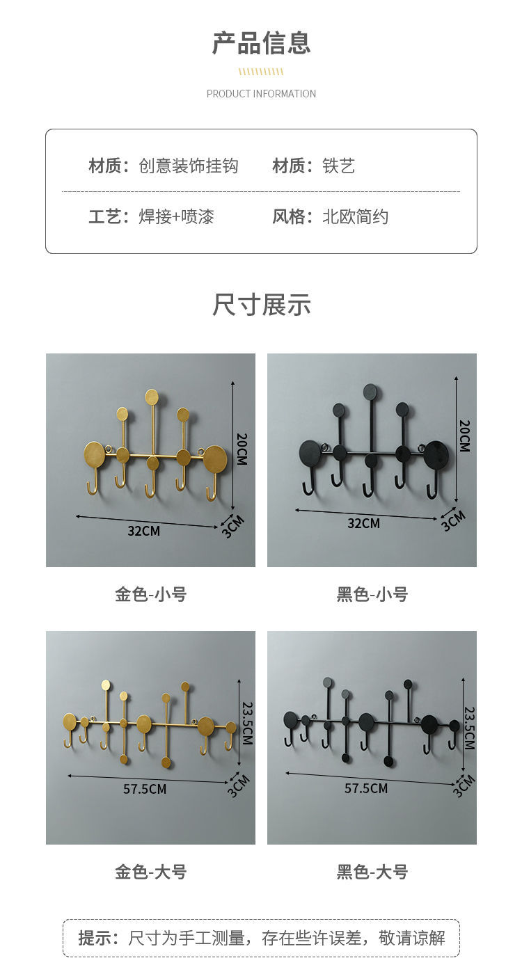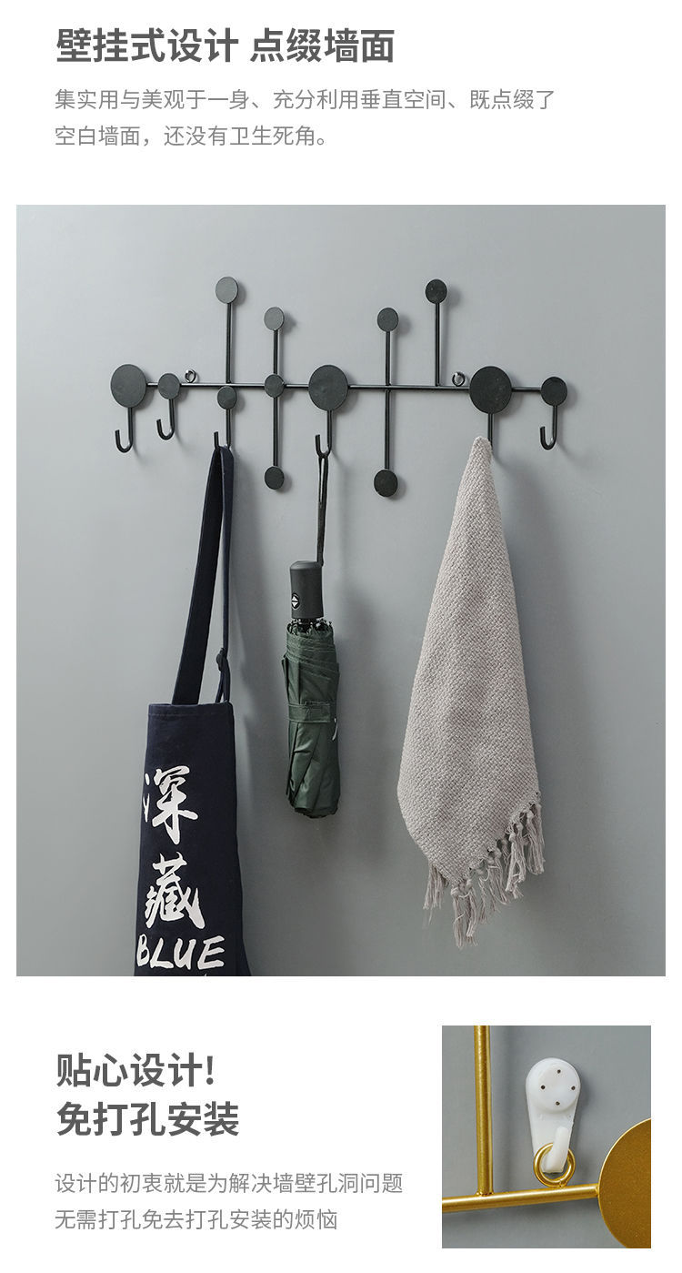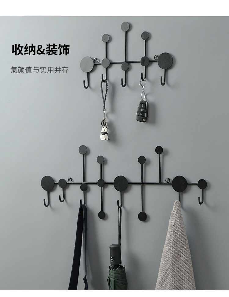 创意客厅玄关门后钥匙装饰挂钩墙上挂衣服挂架收纳免打孔铁艺衣帽