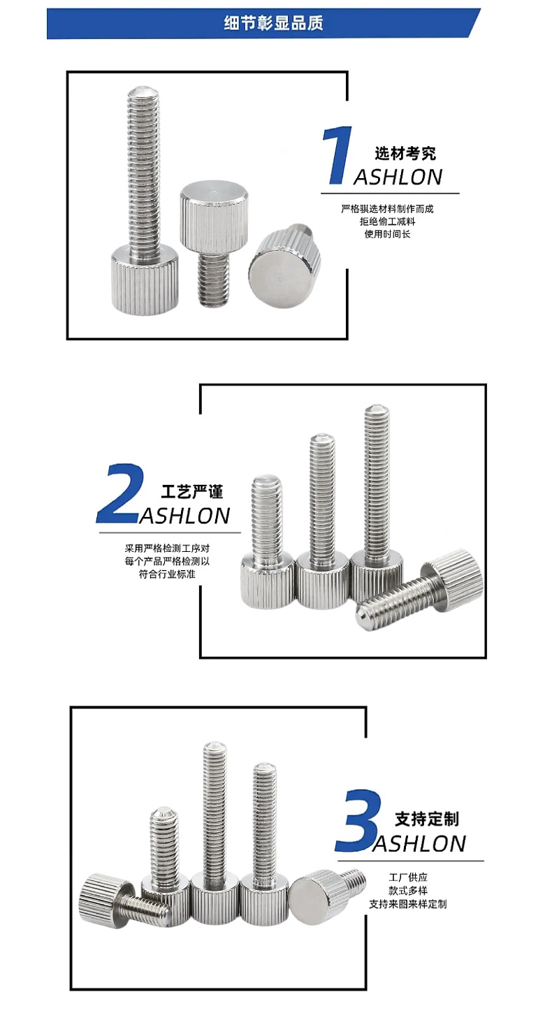 304ローレット手締めネジ、小頭縦溝手締め平頭ローレットクイックリリースネジ、ハンドル付き調整ネジ