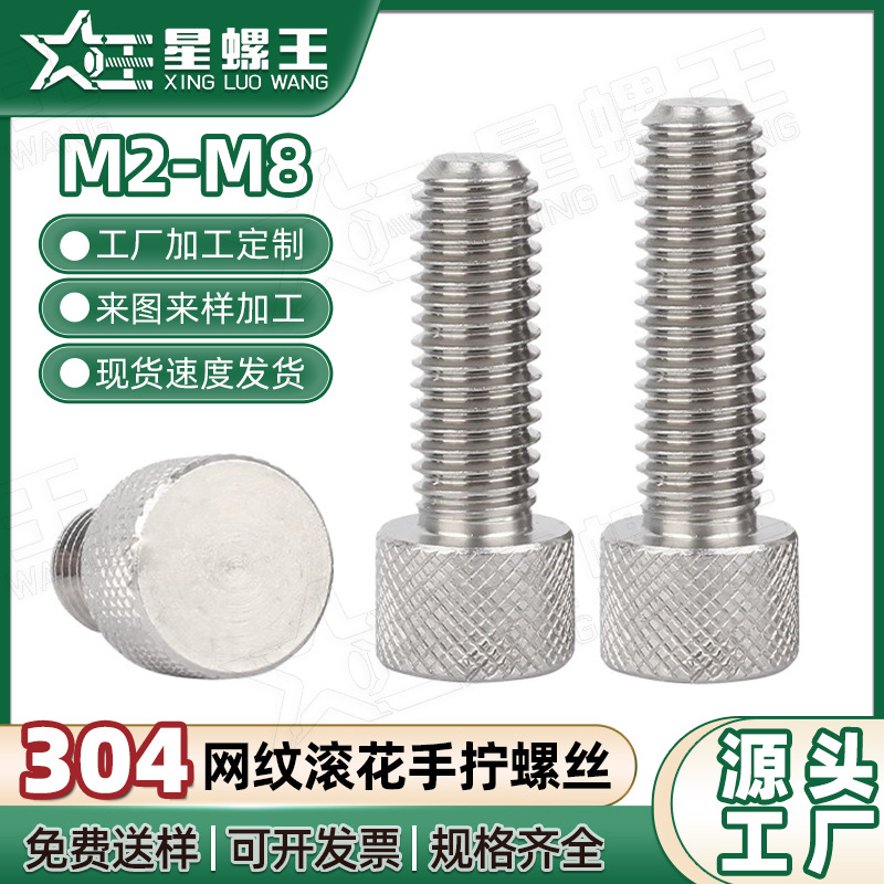 304 ステンレス鋼 GB835 ローレットねじ手締め調整ボルト大頭ローレットねじ M3-M10