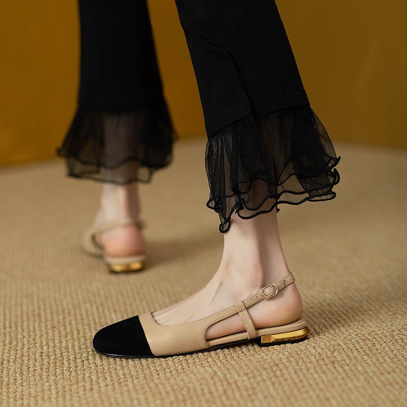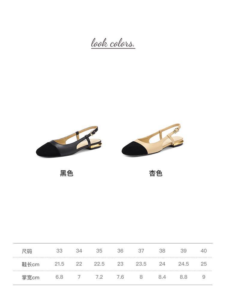 小香风真皮拼色低跟凉鞋女包头2022夏季新款复古一字扣后空平底鞋