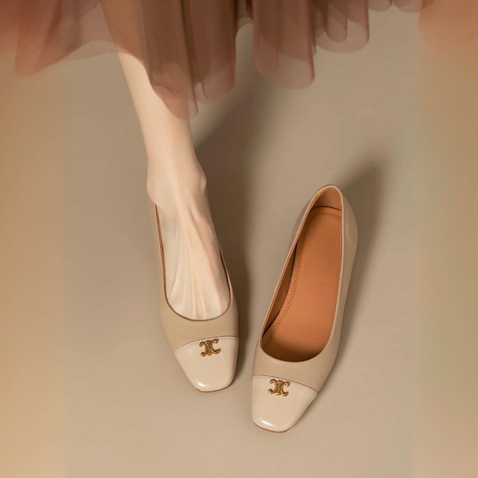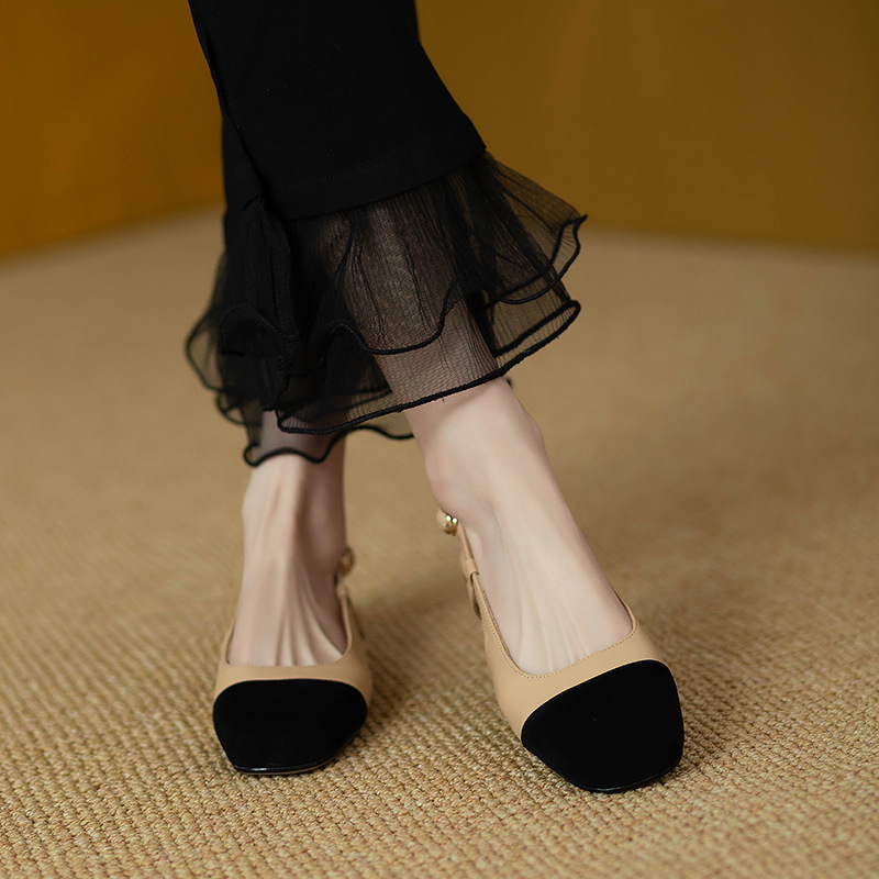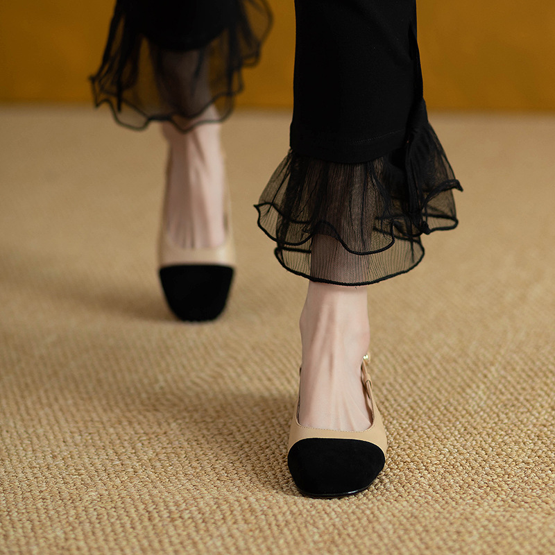 【在庫あり】8552 ソフトレザー手作り婦人靴 2025春秋新作 フレンチレトロ風 エレガントなスクエアトゥローヒール