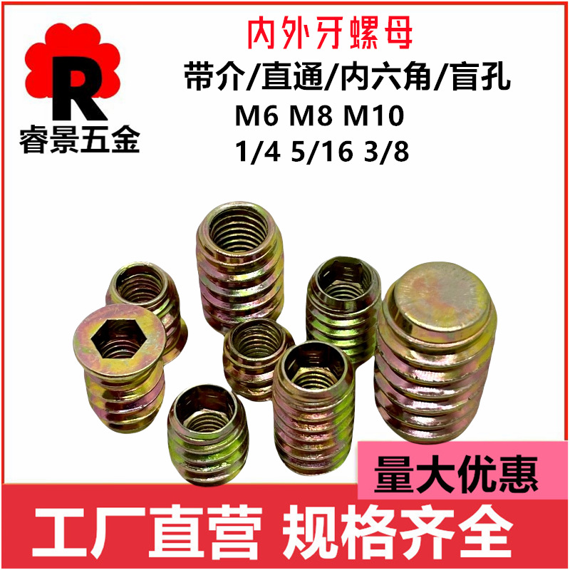 内套牙(管内)螺母 T型螺母 唇帽 连接器 锌合金内外牙螺母 铁内外牙螺母 刺母 拉帽 铁板螺母 四爪螺母