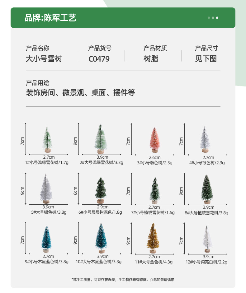 サイズ グリーンスノーフレークツリー-7cm,ライトグリーンスノーフレークツリー-9cm,ピンクの木-7,木製ベース付きシルバーツリー-7cm,木製ベース付きシルバーツリー-9cm,深緑の木-6cm,木製ベースの青い木-7,木製ベースの青い木-9,植毛スノーフレークツリー-7cm,植毛スノーフレークツリー-9cm,ゴールデンツリー-9,シャイニーホワイトツリー-7cm,松葉の木-5cm