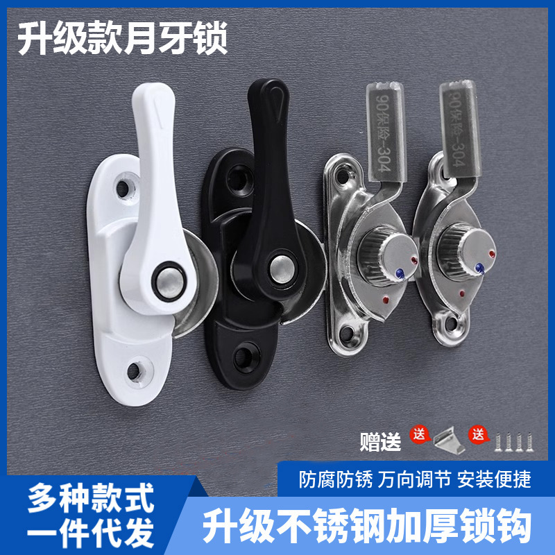 铝合金门窗月牙锁老式不锈钢窗户锁扣卡扣推拉门塑钢窗推拉窗通用