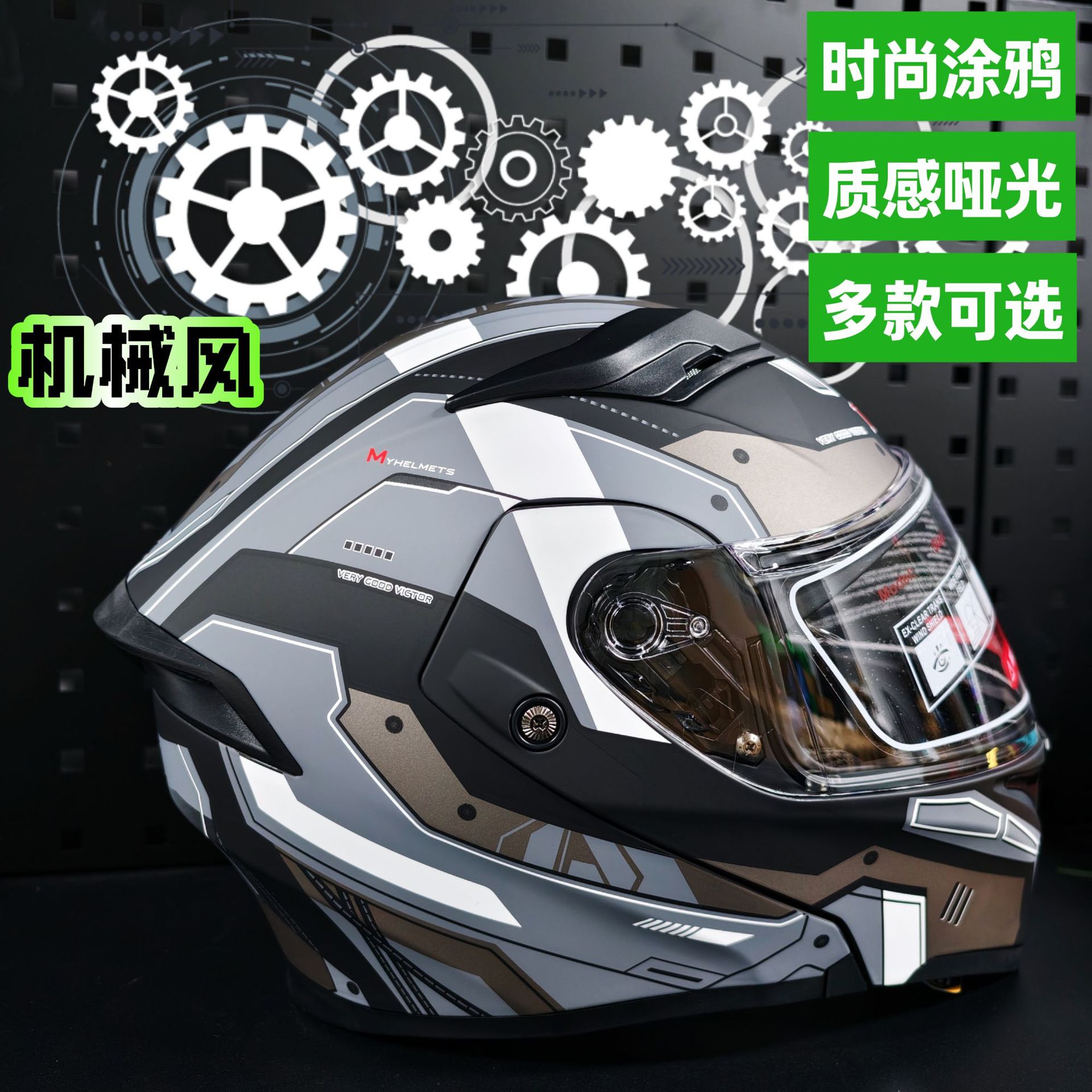 バイクヘルメット男女ダブルレンズ大尾翼3Cバイクに乗って冬のクールな個性安全ヘルメット