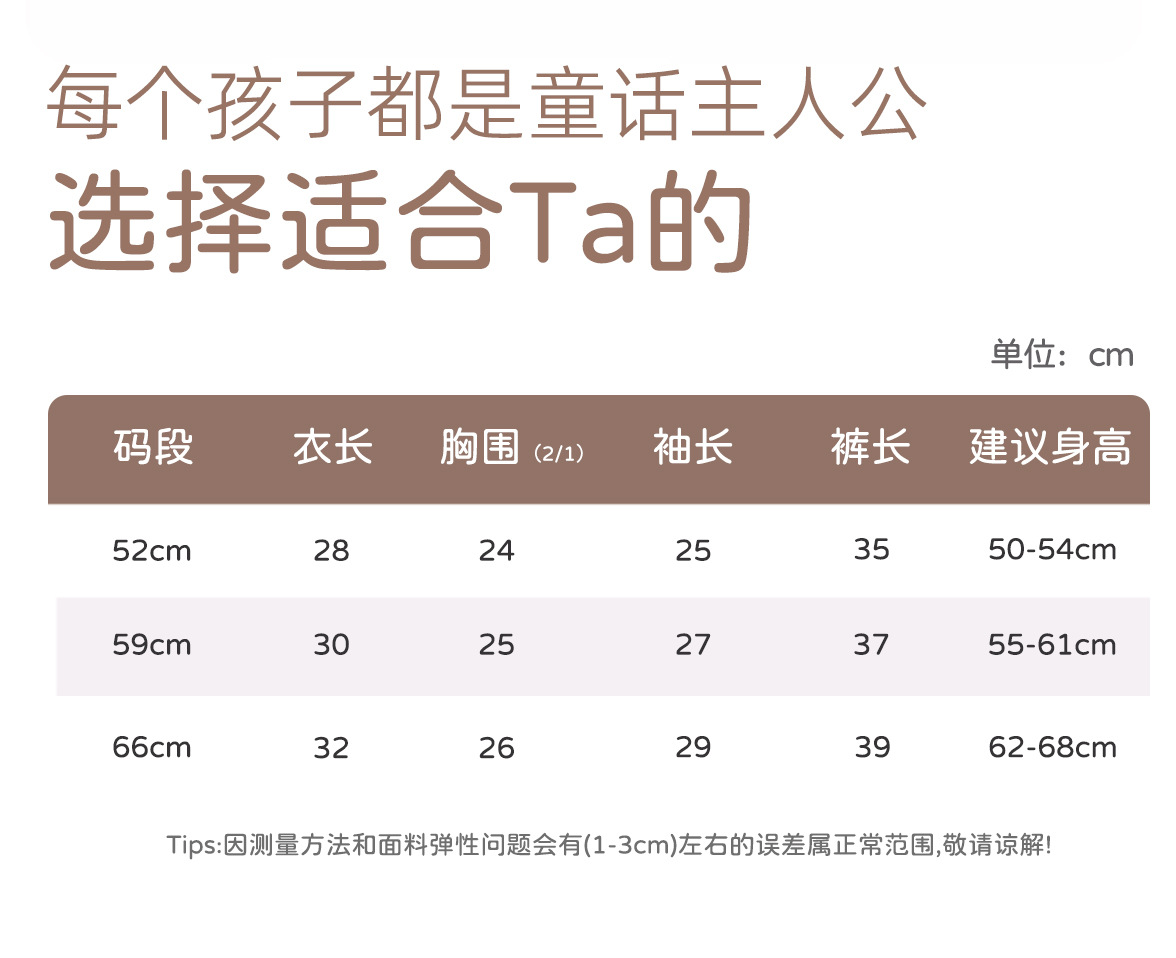 サイズ 52 (新生児),サイズ 59 (1 ~ 3 か月),サイズ 66 (3 ~ 6 か月)