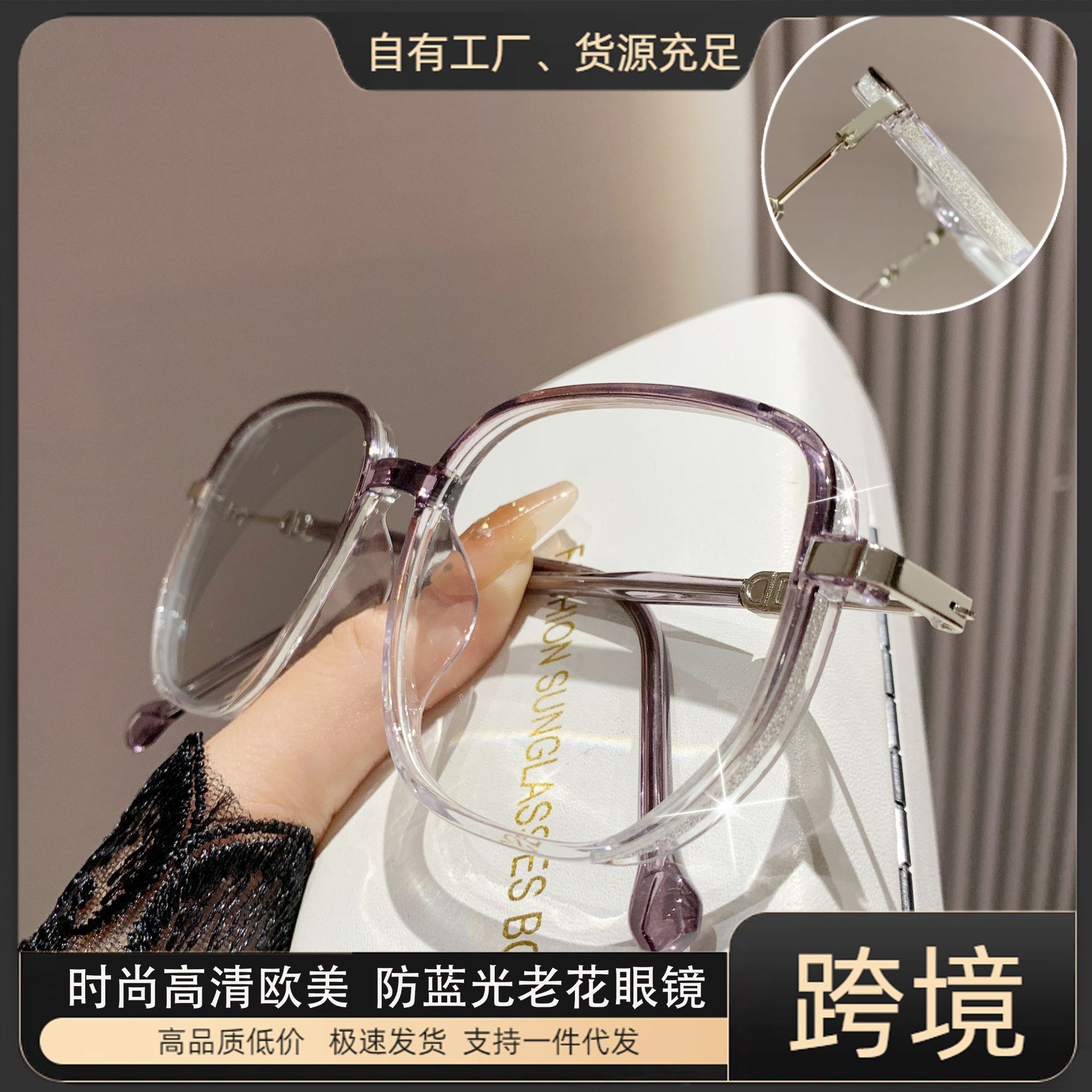2401新型ブルーレイ防止老眼鏡男女韓潮多角形鏡枠中高年抗疲労老光眼鏡