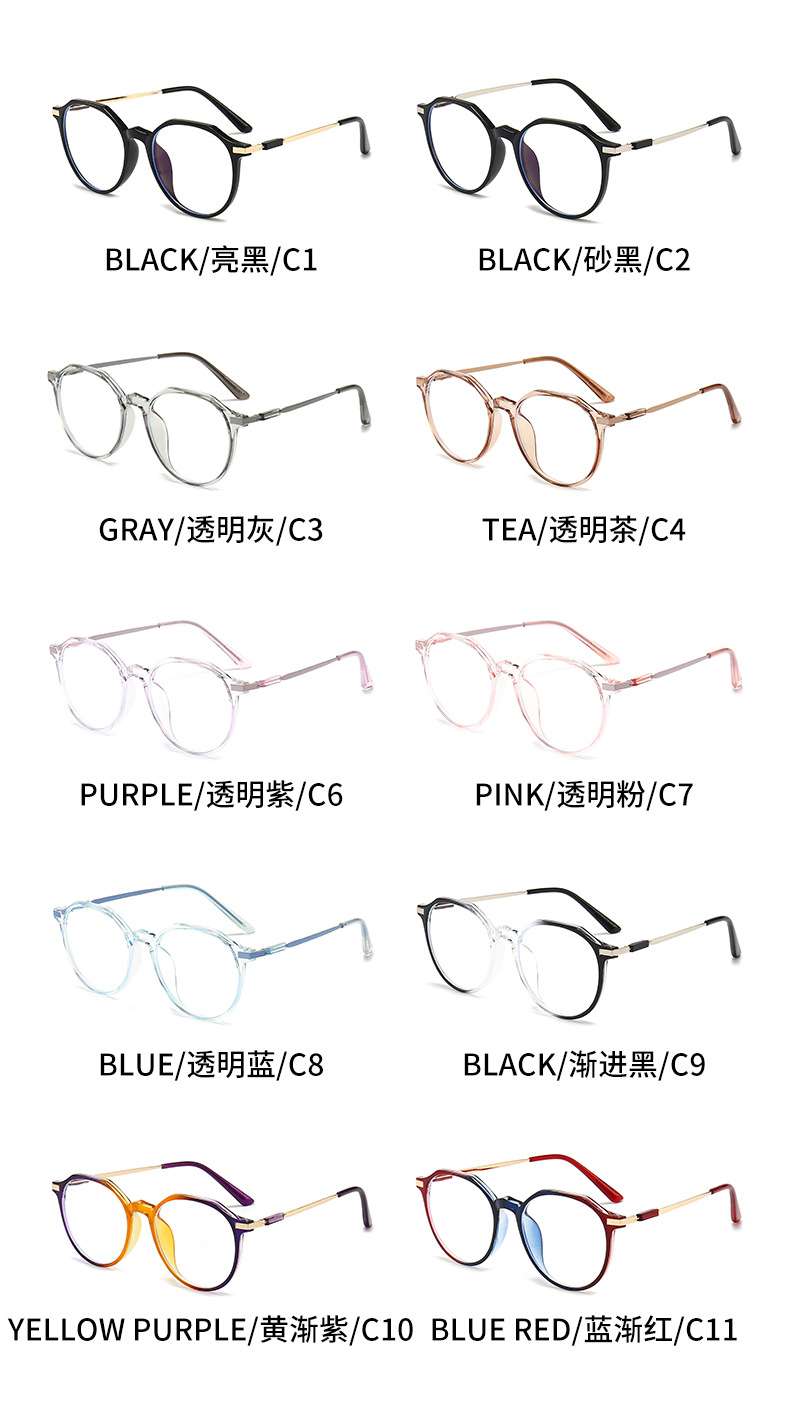 2986新型ファッション調光メガネ、楕円フレーム、トレンドメガネフレーム、男女兼用、ブルーライトカット、近視用メガネ
