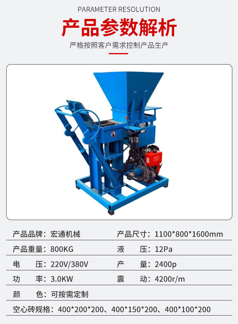 ディーゼル式レンガメーカー小型移動無焼中空レンガ設備レンガ製造機