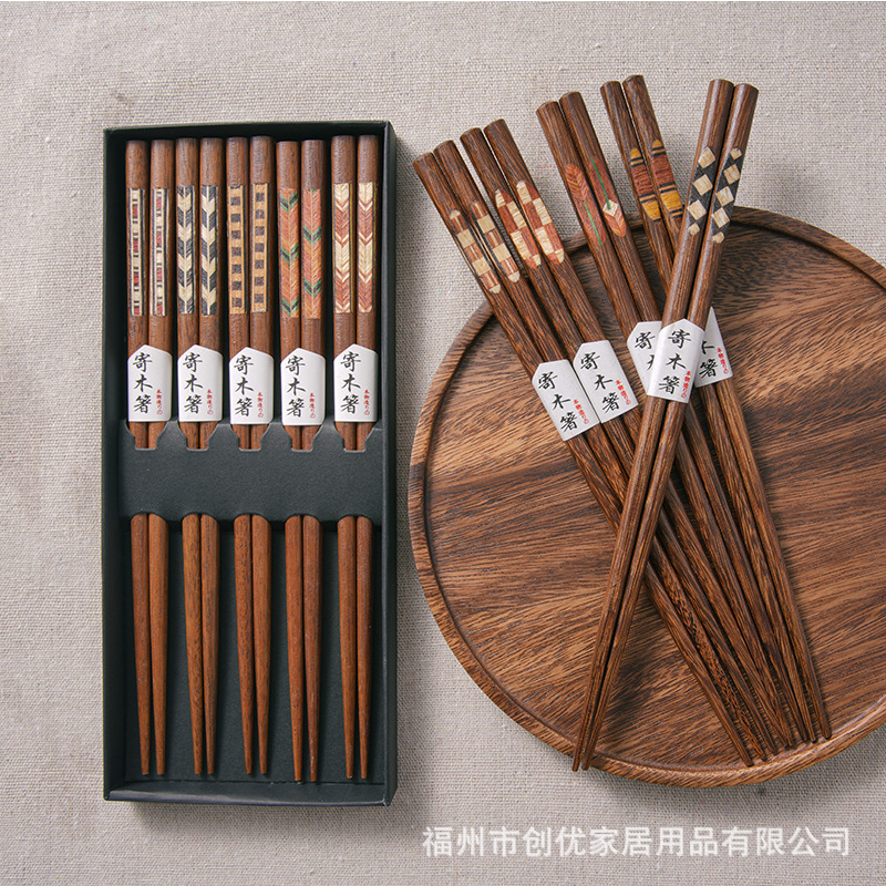 日式磨头刻花尖头筷子长印花工艺筷家用高颜值餐具礼品筷子伴手礼