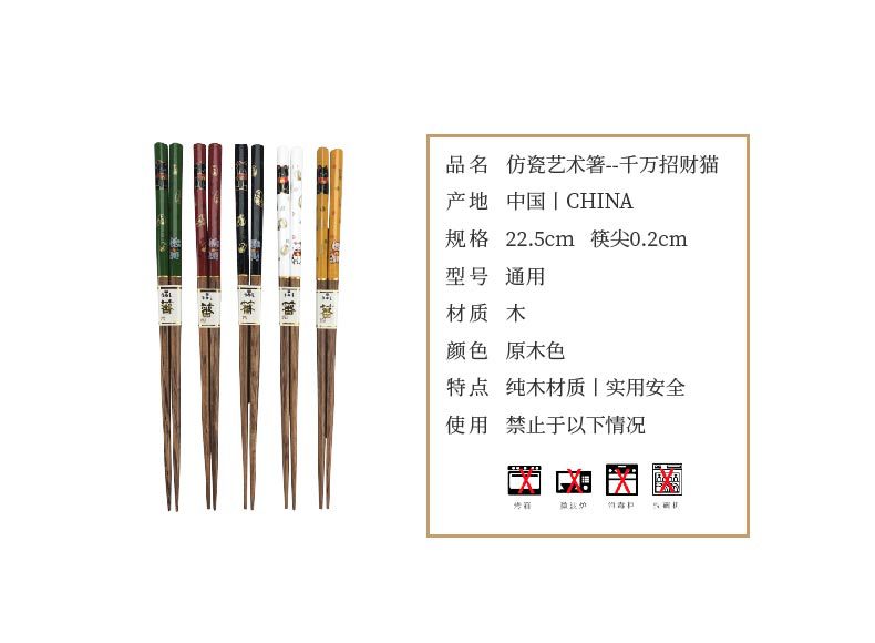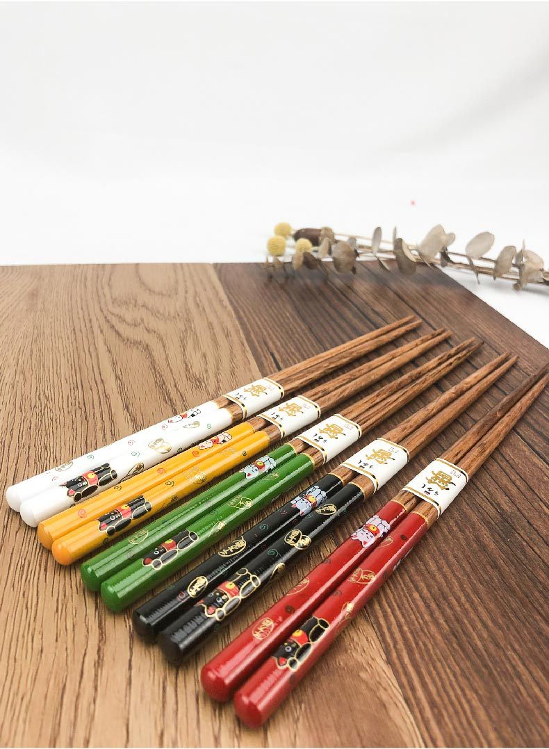 1人1本箸 和風招き猫5本箸セット 木製箸 ギフトボックス メーカー卸売 家庭用高価値箸