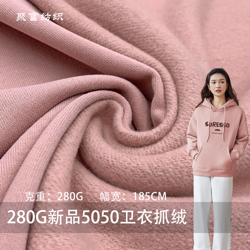 280G新品5050卫衣抓绒CVC毛圈拉绒布单面无弹抓毛针织卫衣布面料