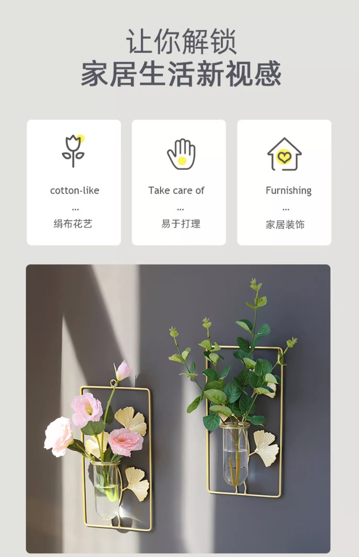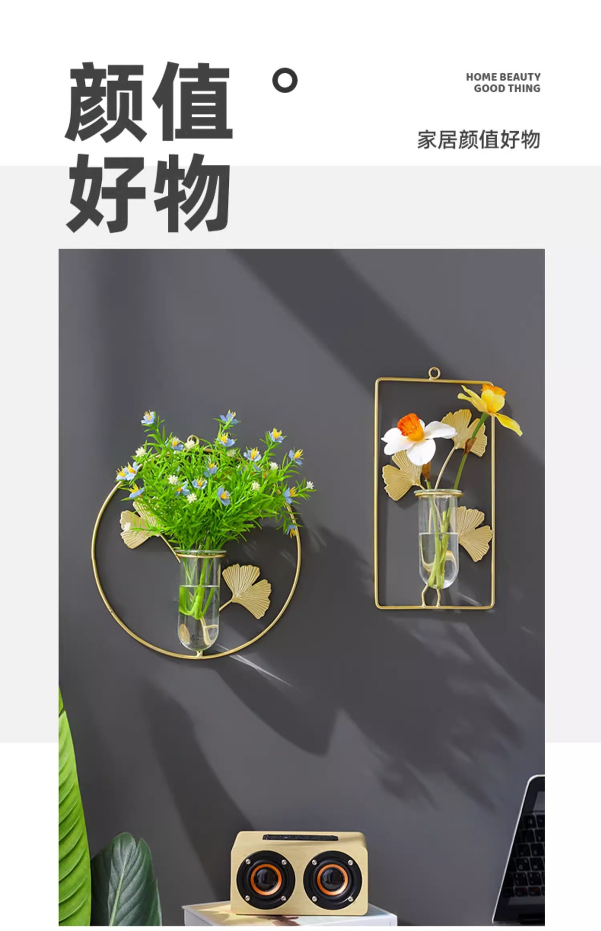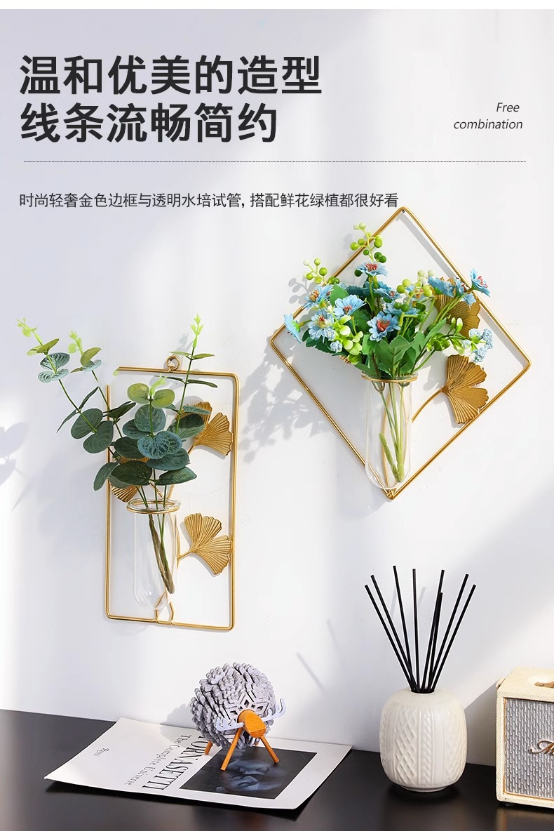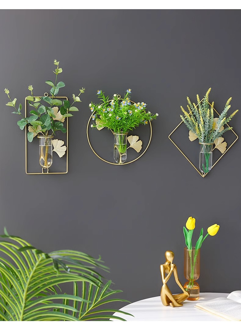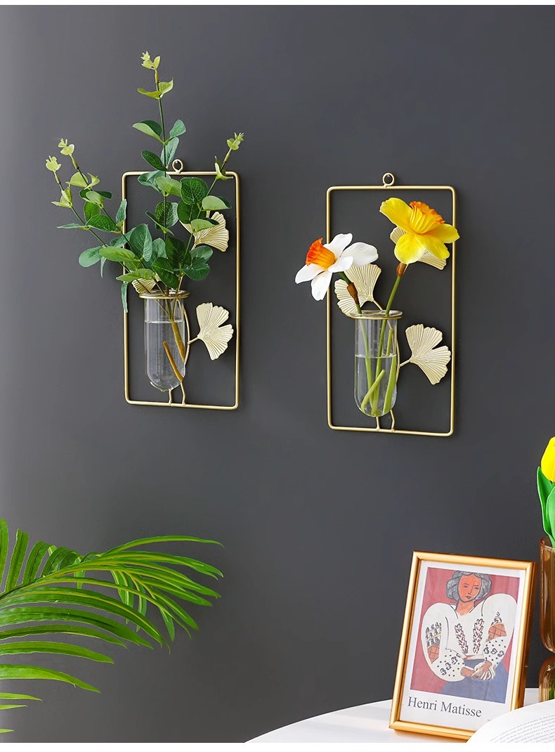 アイアン製花瓶、インスタイルのリビングルームの壁飾り、水耕栽培の花器、クリエイティブな家の壁飾り、インスタイルの家の壁掛け