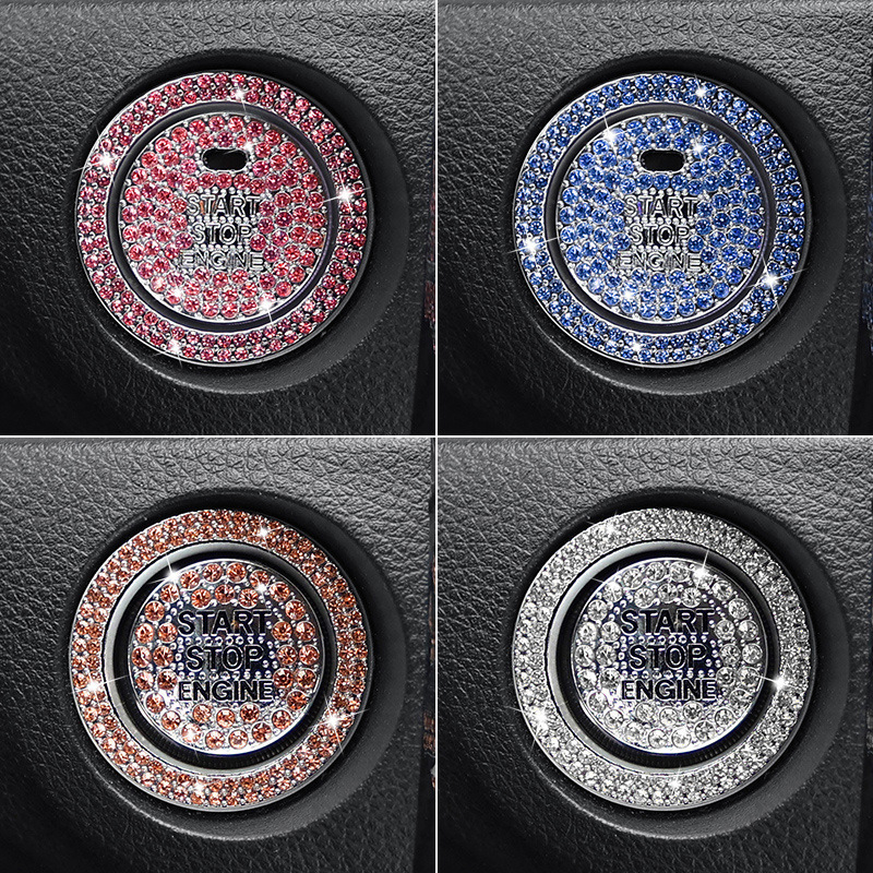 車用ダイヤモンド装飾スタートストップボタンリング、点火キー用ボタンリング、車内装飾、車載ダイヤモンド装飾改造