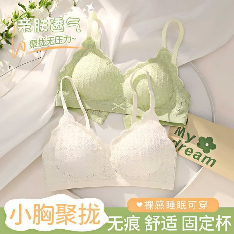 法式蕾丝无痕内衣女薄款小胸聚拢上托防下垂收副乳舒适固定杯文胸