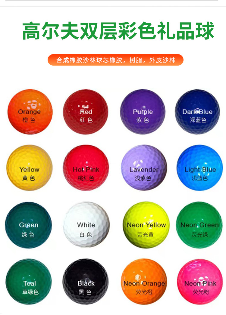 源メーカーの新しいゴルフカラー二重球層練習球白球カラーギフト球はロゴを印刷できる