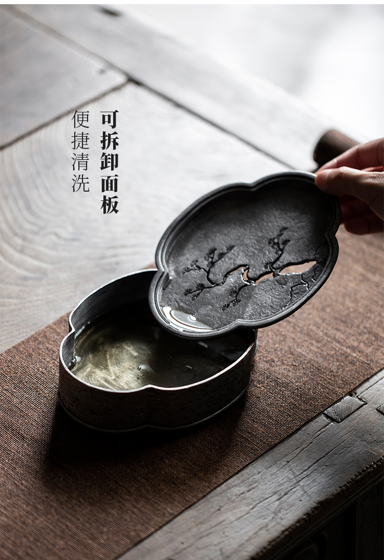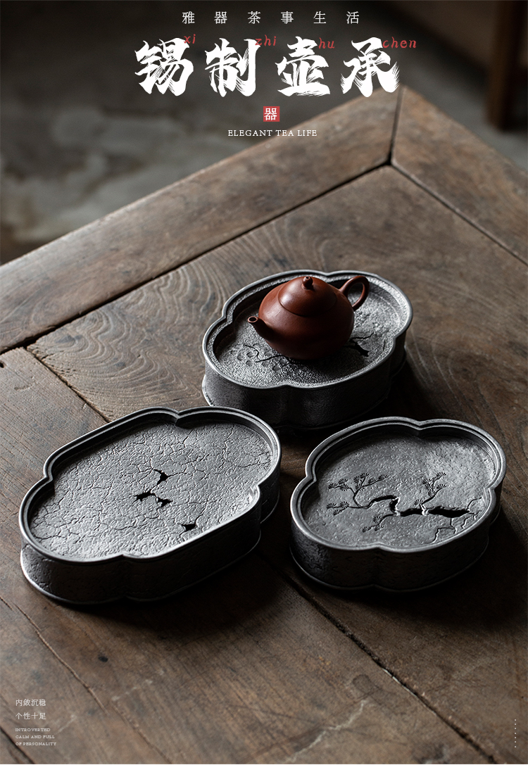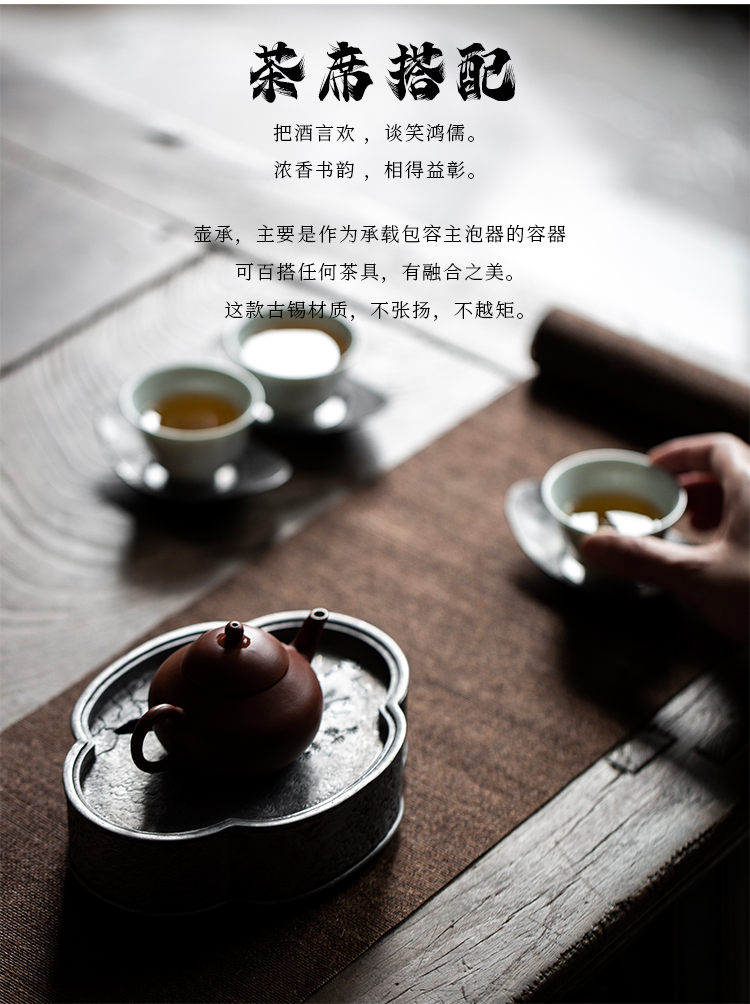 純老錫壺承日本式レトロ乾泡台茶盤工夫茶器建水養壺茶承パレット壺マット貯水