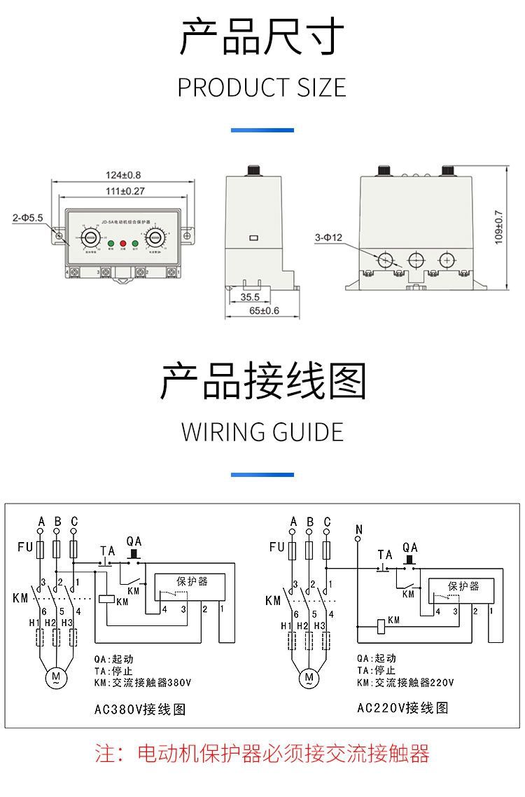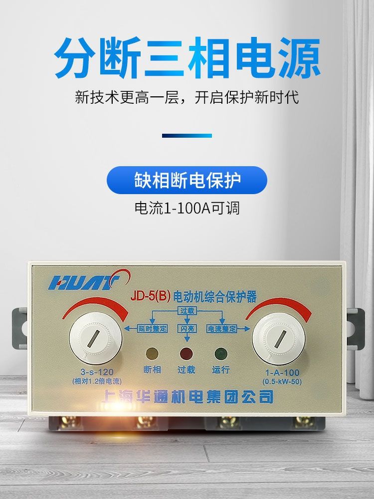 華通家庭用モータプロテクタ過電流過負荷保護JD-5Bモータ欠相三相保護警報付き