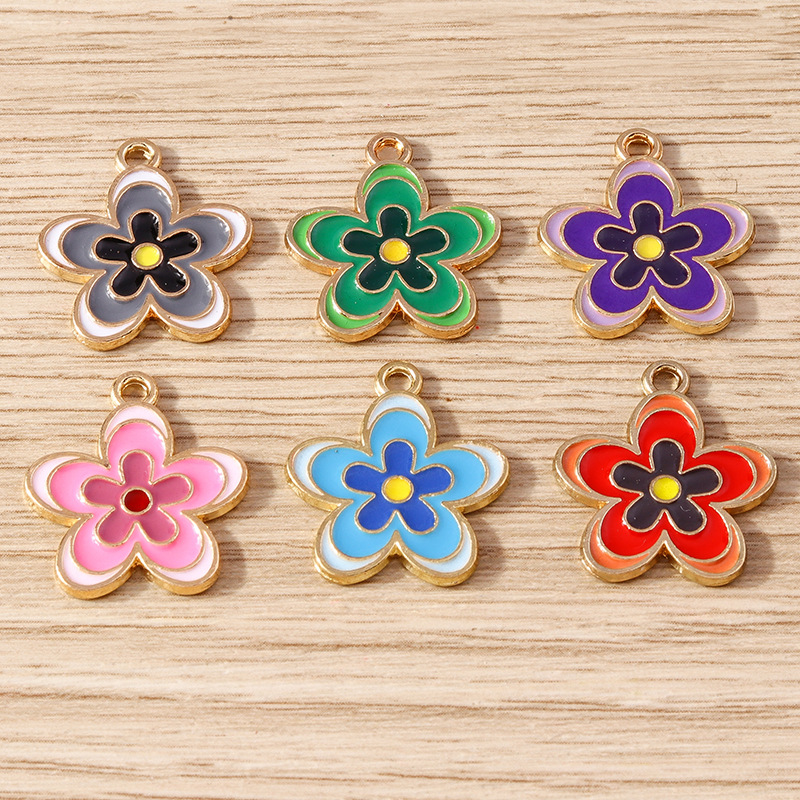 10个/パック合金ドロップオイルアクセサリーINS甘いダブルハンギングデイジーアクセサリーdiy花キーホルダーペンダント