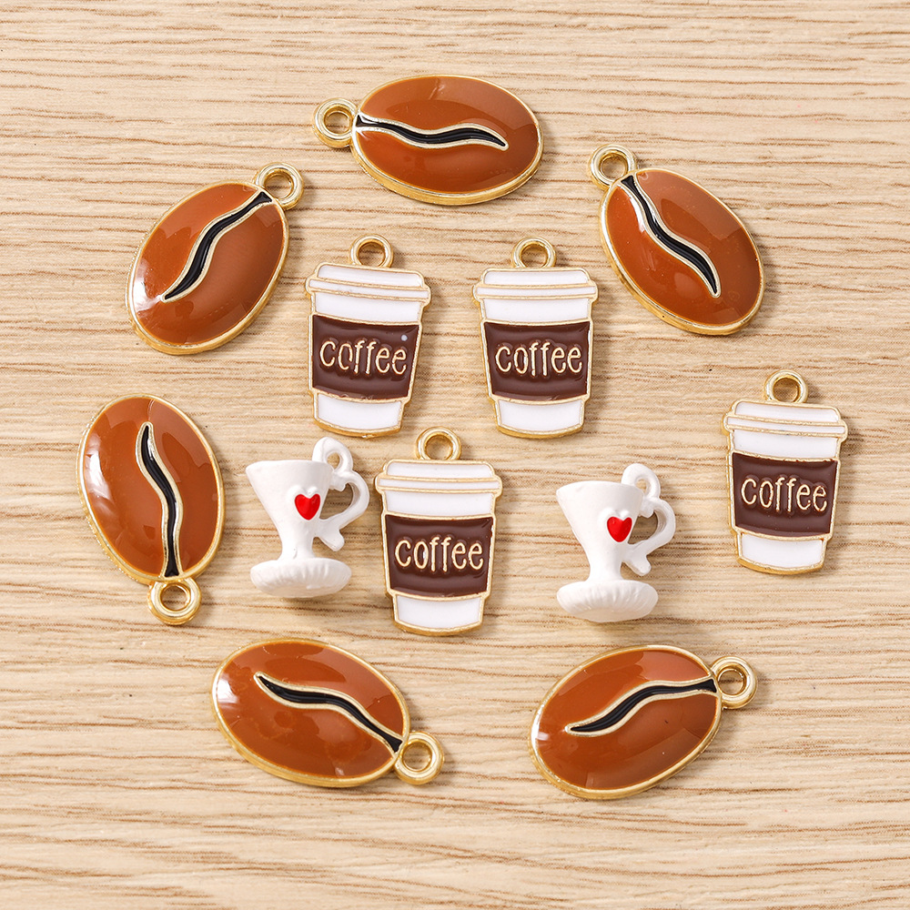 10个/包新款杯子吊坠挂件手链项链钥匙扣咖啡豆咖啡杯diy饰品配件