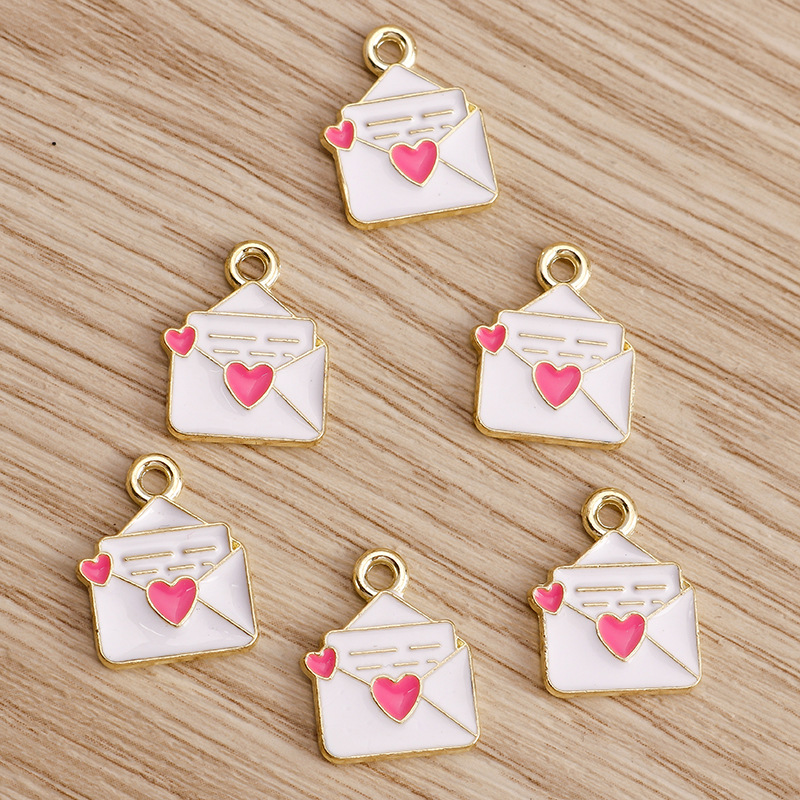 10個/包合金滴油愛封筒ストラップ髪飾りアクセサリーブレスレットネックレスdiy部品メーカー卸売り
