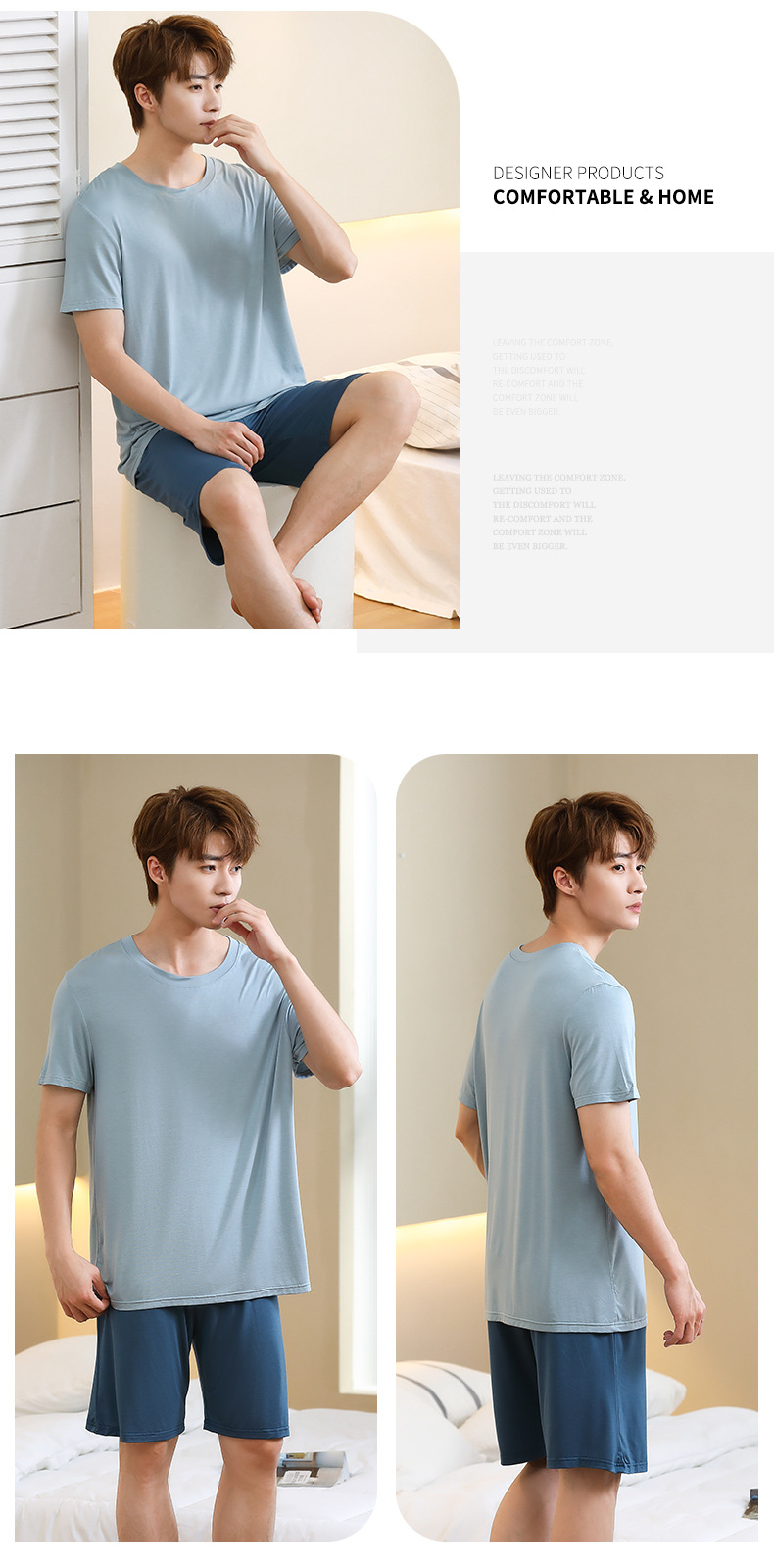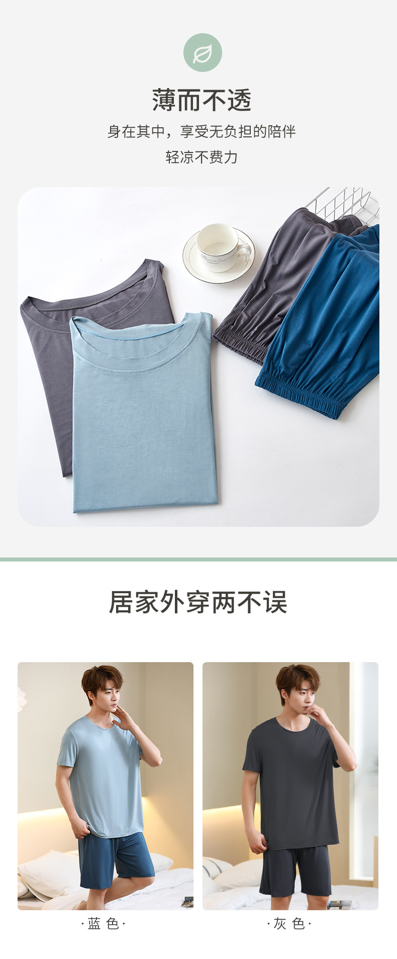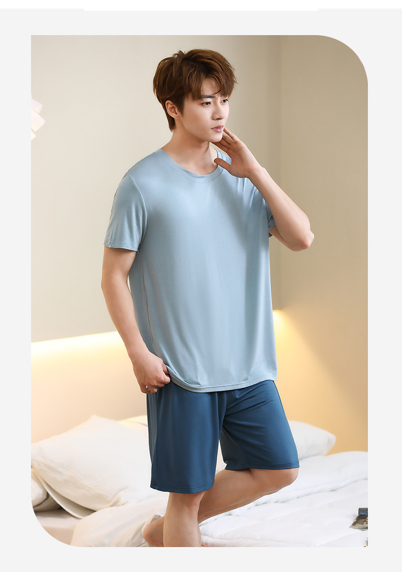 モーダル 25 歳メンズパジャマメンズ夏半袖アイスシルク夏ティーンエイジャープラスサイズスーツホーム服缶