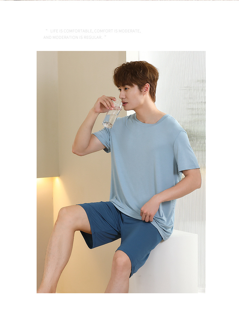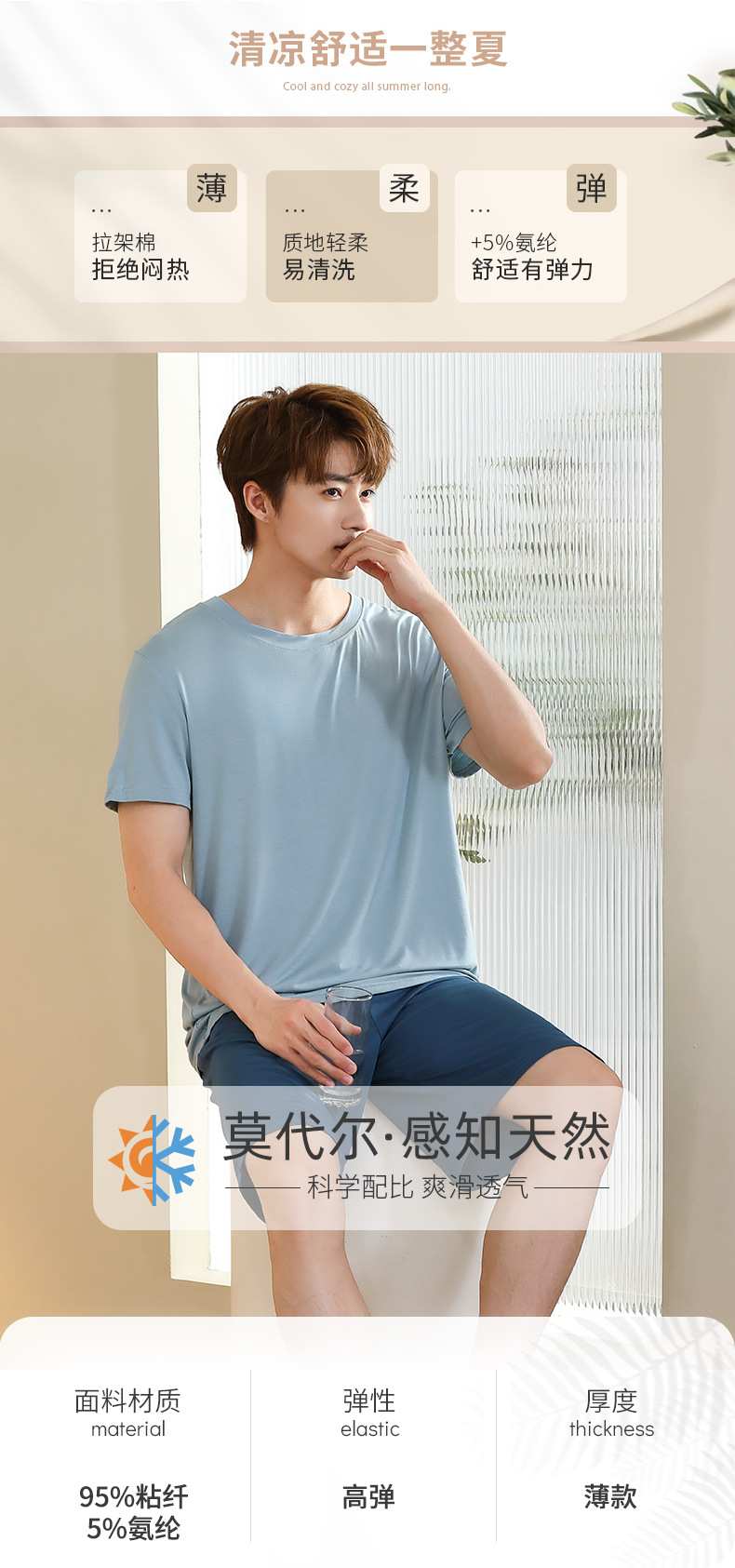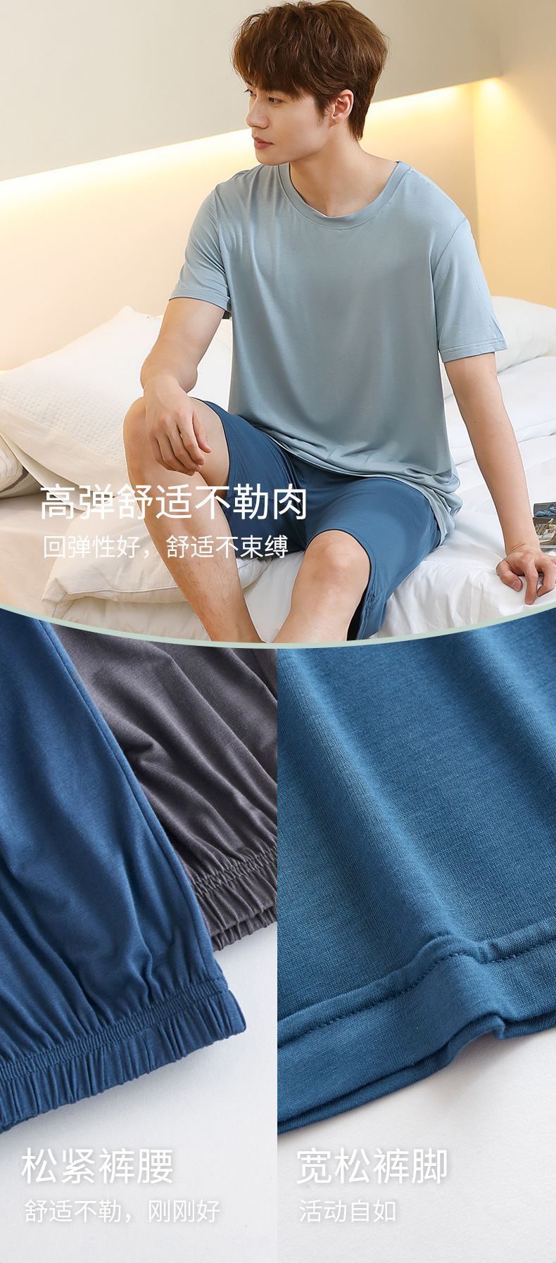 モーダル 25 歳メンズパジャマメンズ夏半袖アイスシルク夏ティーンエイジャープラスサイズスーツホーム服缶