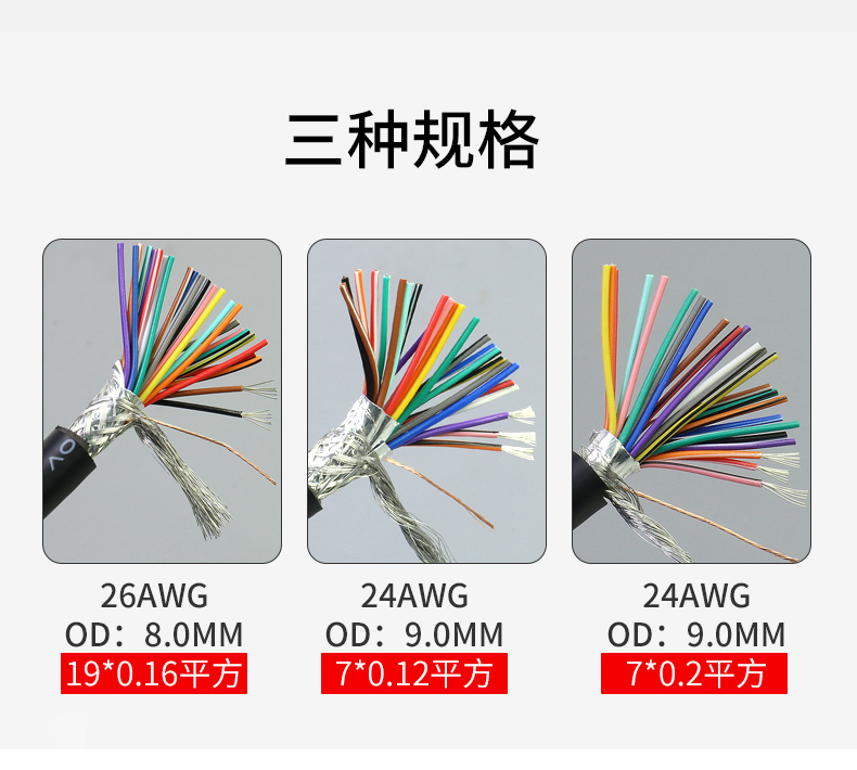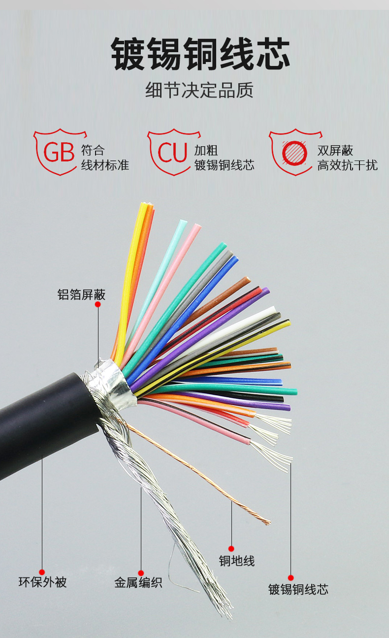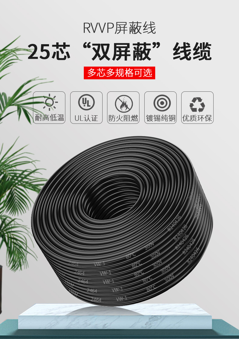 カラー 25芯ダブルスシールド線【26AWG】7本の0.16銅線,25芯ダブルスシールド線【24関a】19本の12% 銅線