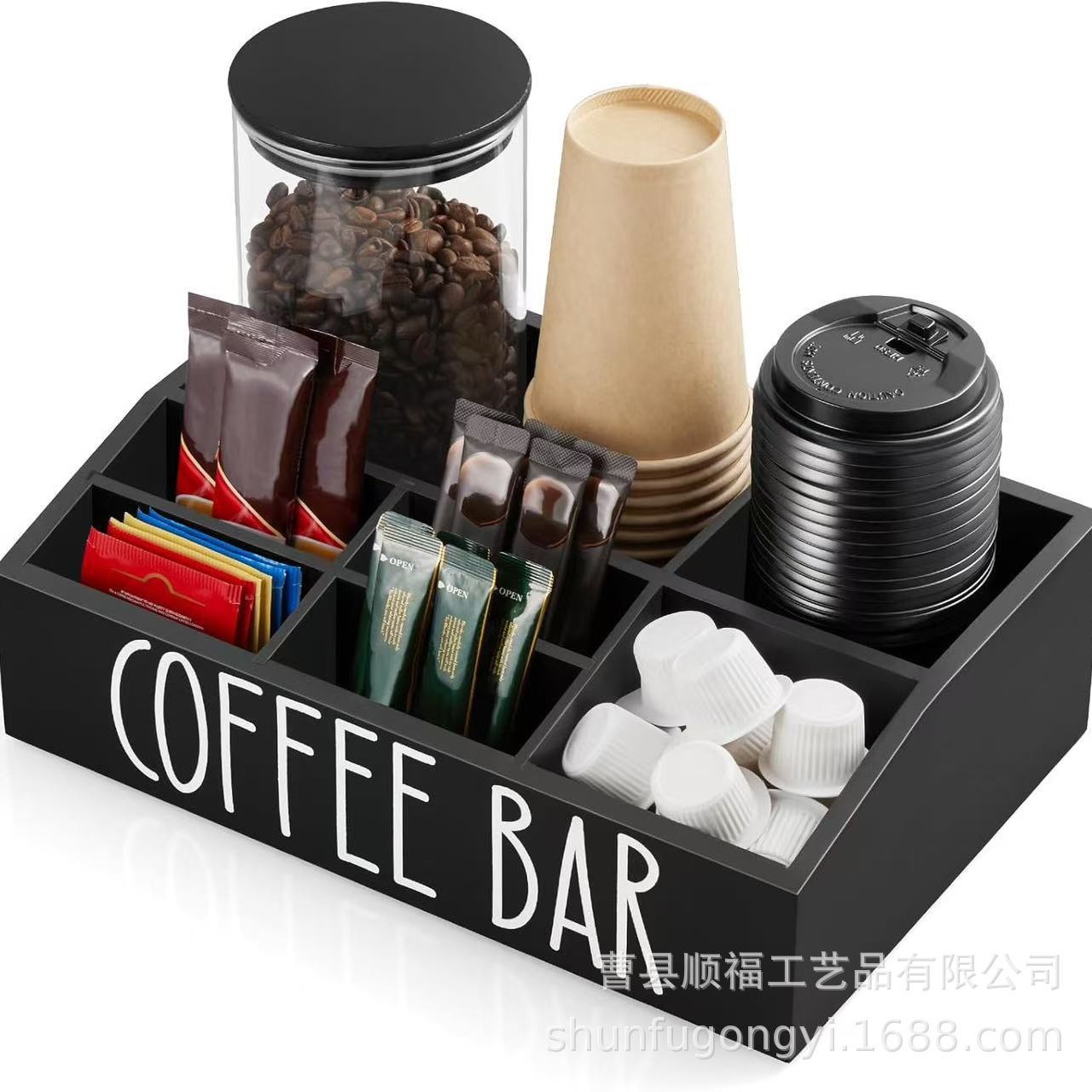 木製キッチンコーヒーティーバッグ収納ボックスデスクトップ木製分割収納ボックスクリエイティブ紙コップ整理木箱