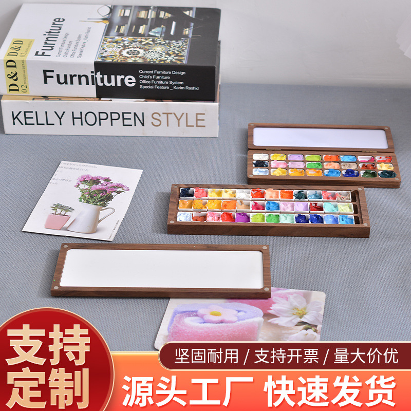 無垢材水彩絵の具ボックス子供の手作りインスタイル絵画カラーボックス分割磁気カバー木製絵の具ボックス