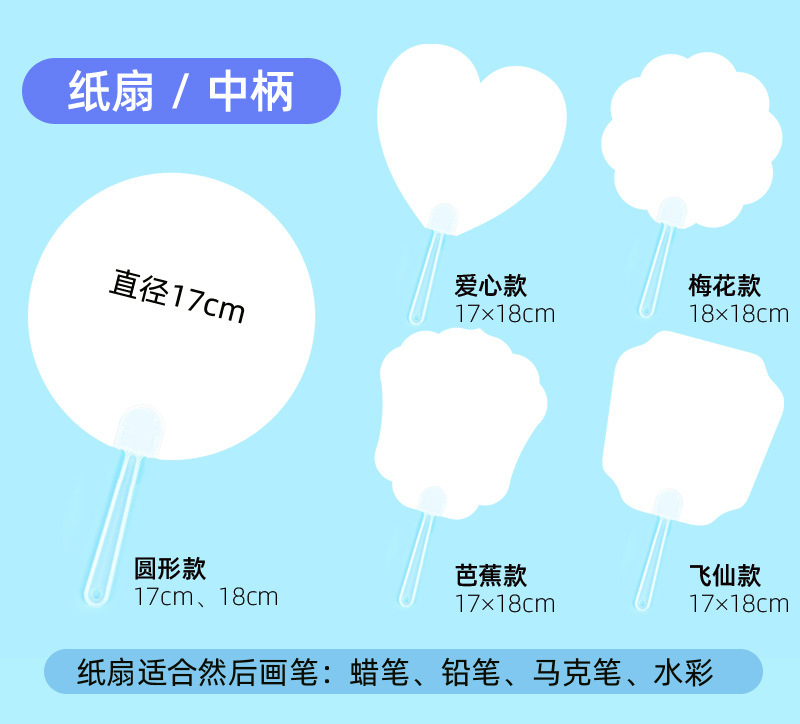 手作り diy 特殊形状落書きファン子供の空白の絵画着色小さなファン夏かわいい手回しファン小さなギフト