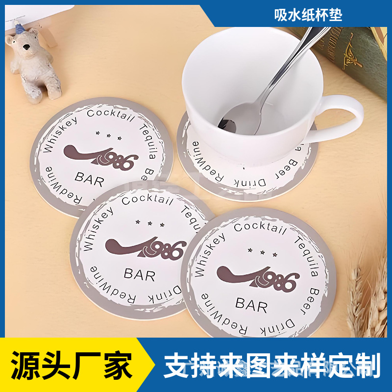 メーカーカスタム箔押しカップマット吸水紙カップマット凹凸圧印紙カップマットビールカップマット