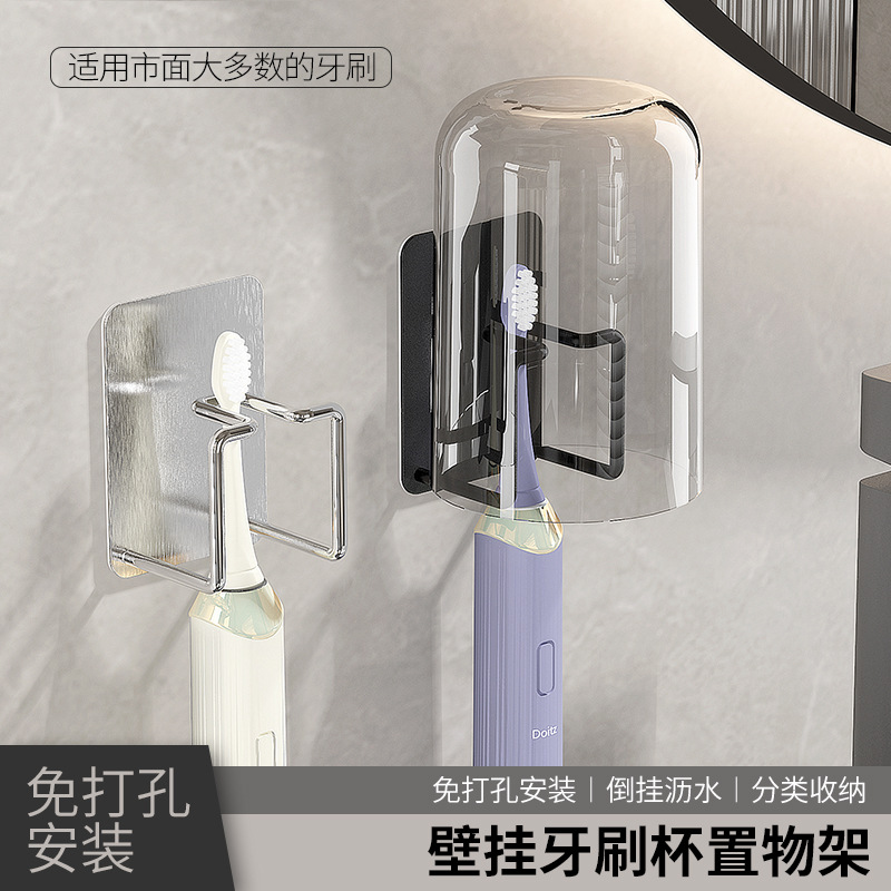 304不锈钢放牙刷架壁挂沥水收纳架免打孔牙刷漱口杯置物架情侣款