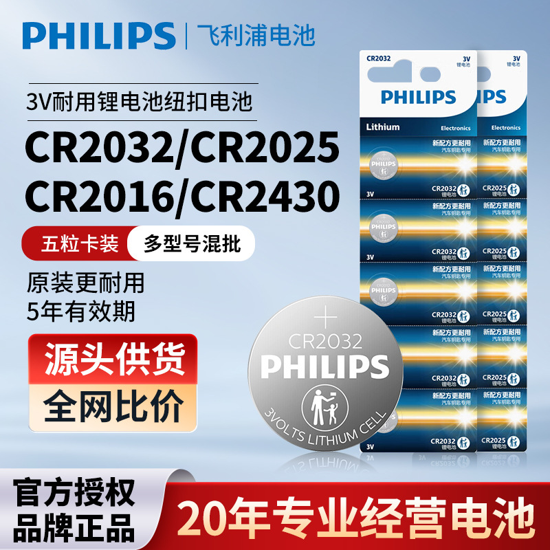 飞利浦纽扣电池CR2032锂电池CR2025/CR2016/CR2430适用宝马别克