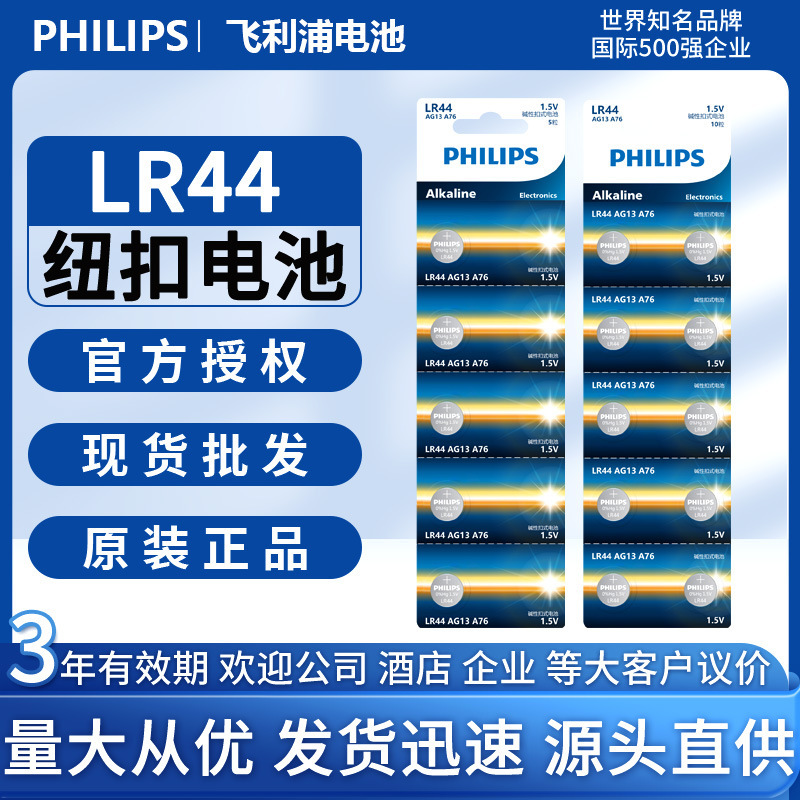 飞利浦纽扣电池LR44 10粒卡装车钥匙电池批发量大优惠石英表电子