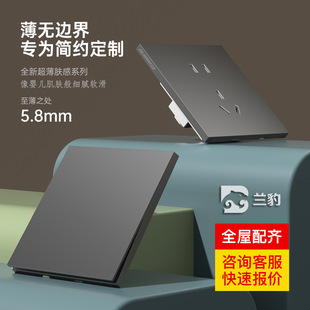 蘭豹家庭用超薄型スイッチパネルつや消し白五穴コンセント86型暗装縁なしダブルコントロール