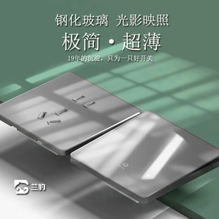 家用超薄钢化玻璃开关插座86型墙壁双联双控灰色一开五孔插座面板