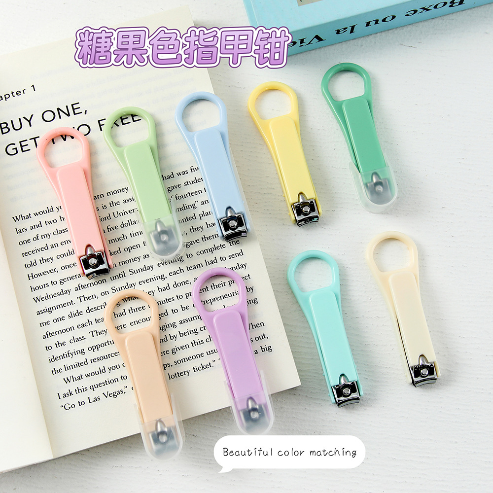 かわいいマカロンカラーの携帯用爪切り、学生向けミニ爪切り、飛散防止ネイルカッター、マニキュア用カッター