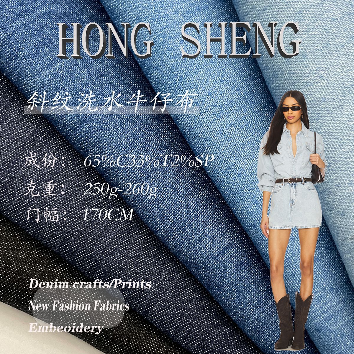 綿65% ポリエステル33% ストレッチウォッシュデニム 8オンス 春夏用SP混紡生地 衣料品生地 在庫あり